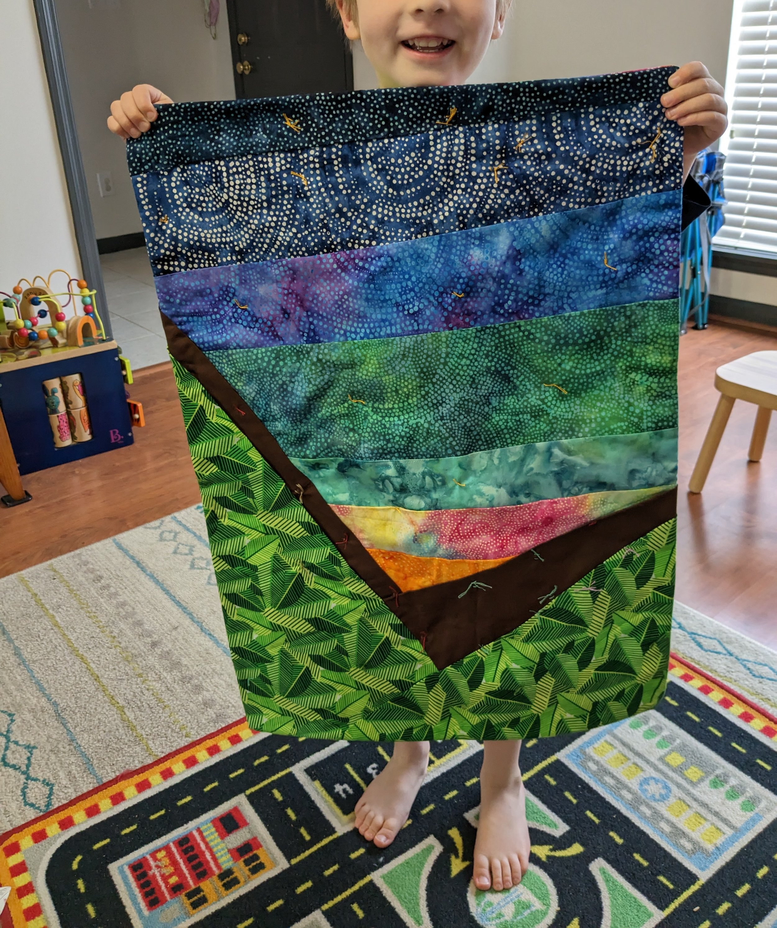 My son is in kindergarten and his school announced their annual art show earlier this spring. There were over a dozen categories that students could enter ranging from painting and drawing to lettering, woodworking, and fiber arts. I read off the list to him, and my son said immediately that he wanted to make a quilt for the art show!