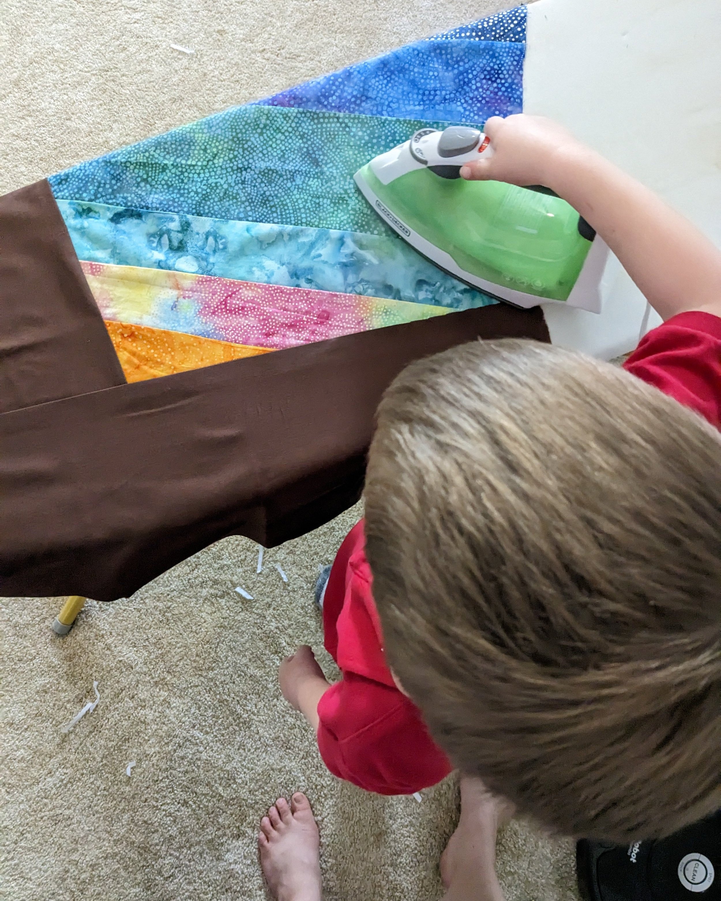 He had shown interest in sewing with me twice before , so he was already familiar with my sewing machine, some of the tools, and the rules of the sewing room. The previous projects were simple pillowcases for instant gratification and had very few steps. Completing a quilt would require a much different approach since there would be many more steps and many more choices to make a long the way.
