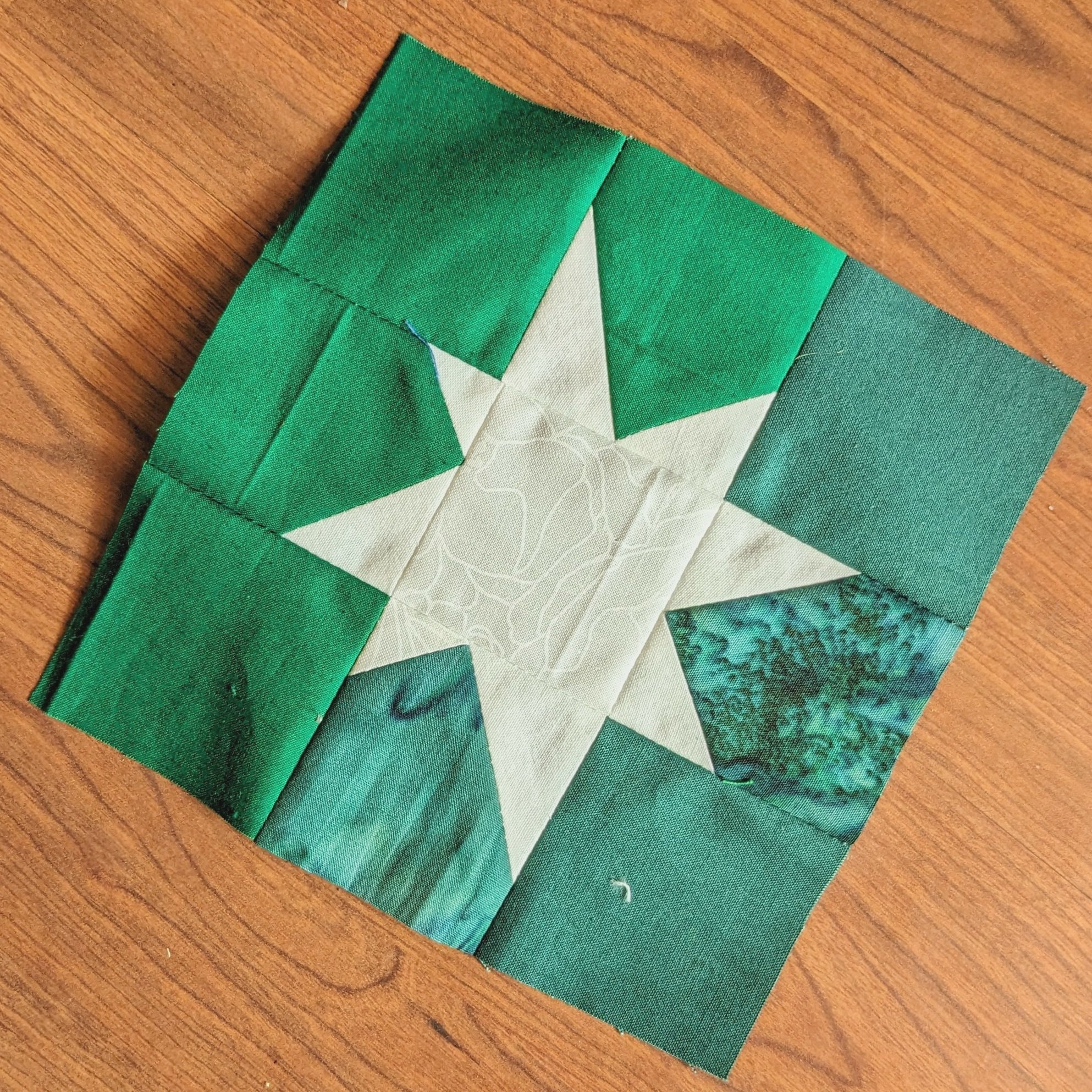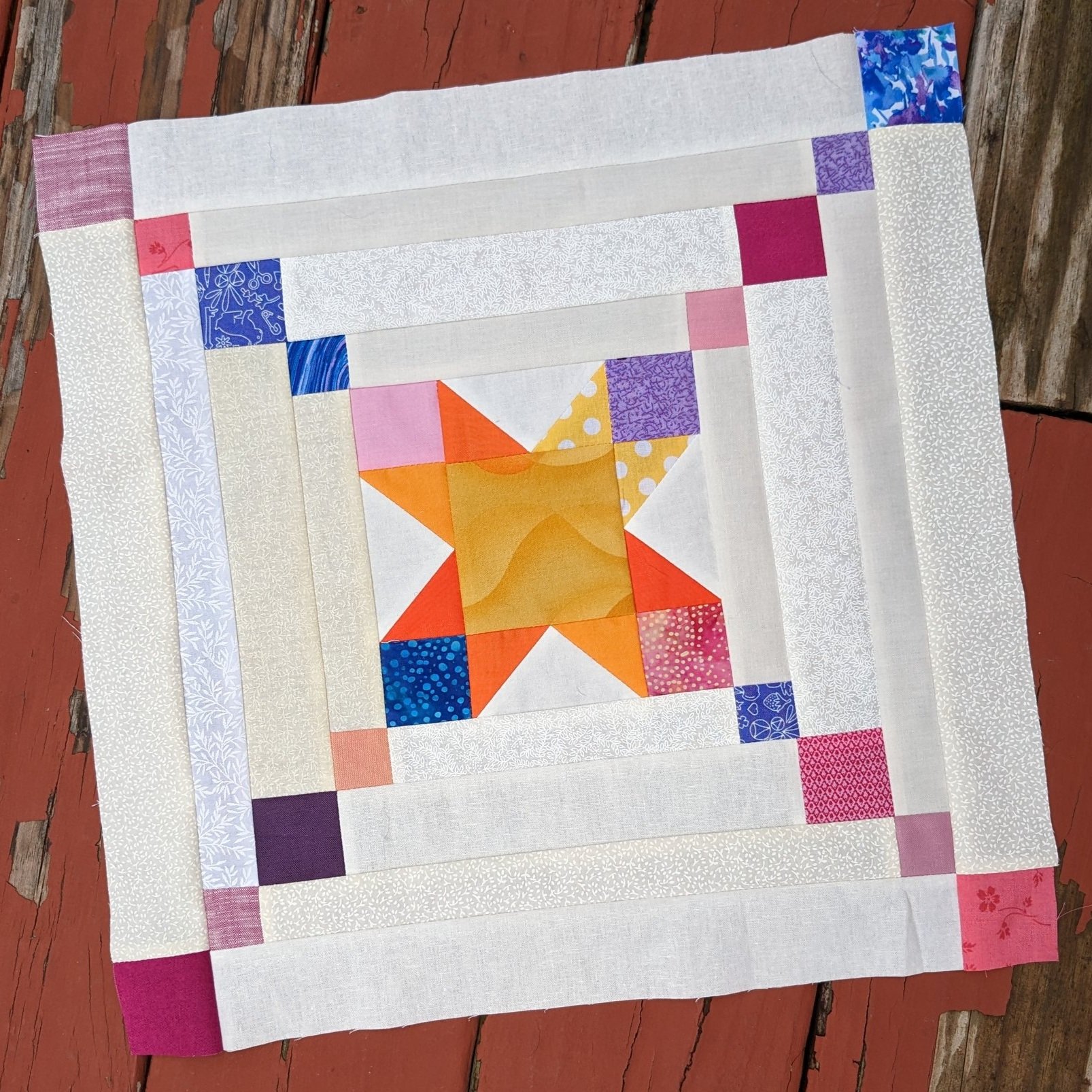 I was surprised at how distracting it was to make a new block each month. When sewing the same block over and over for a block-based quilt, teach block comes together pretty quickly, but for me, each block took much longer when only making one. It makes sense, right – there’s a bit of math to make a block the right size or to figure out the pieces and fabric needed for only one block, then you have to cut and press just the one block. There’s not much efficiency there. And then you have to switch gears every 2 weeks to another block.