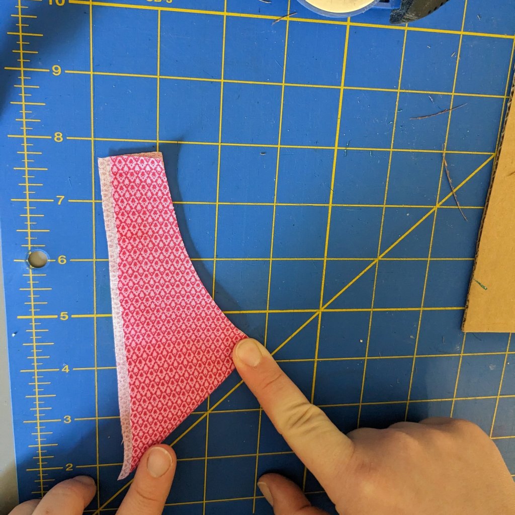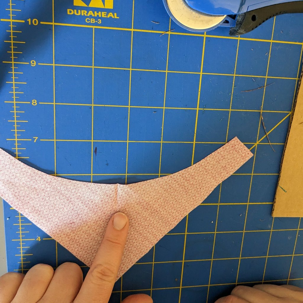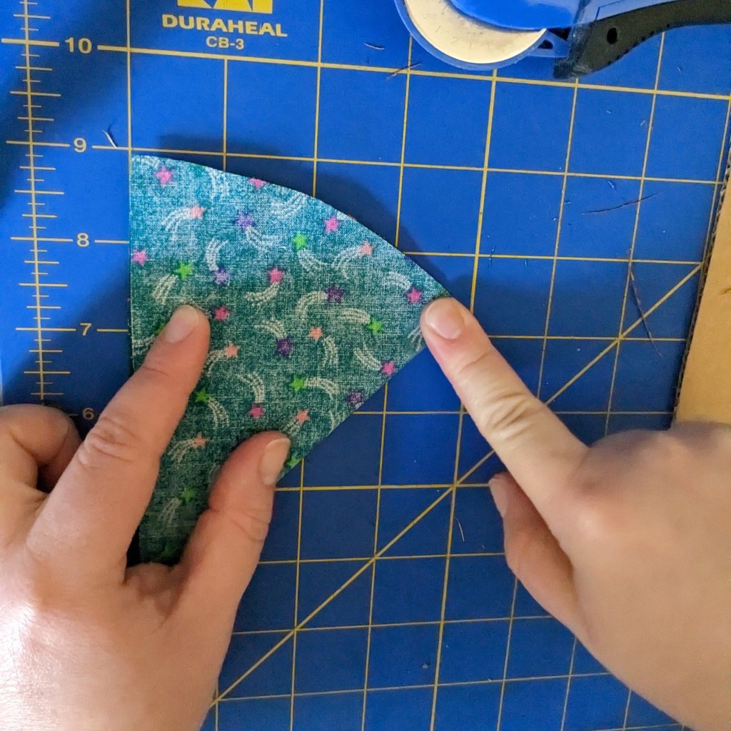 Trim or square up to the size indicated in your pattern, paying careful attention to the amount of space needed on the concave piece.