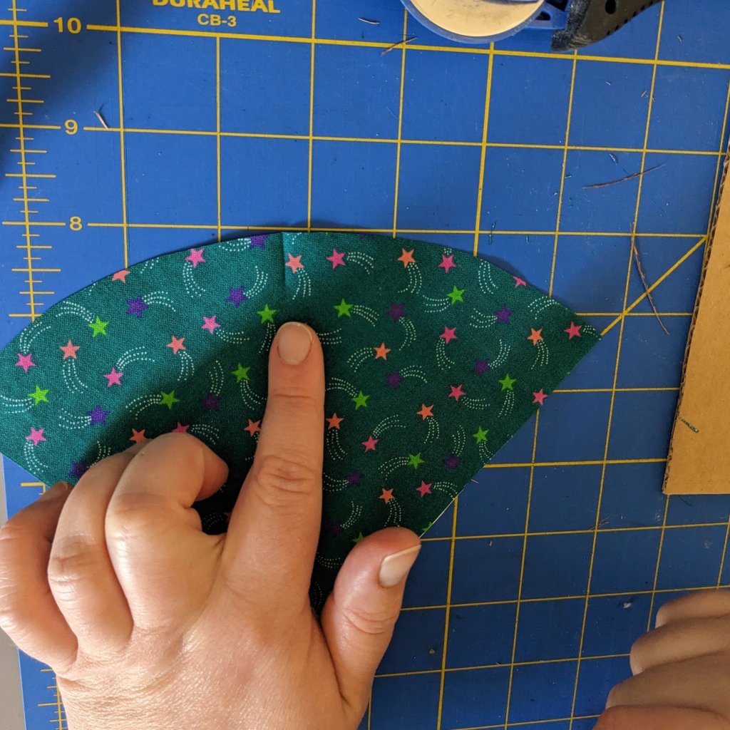 When marking, it can be really helpful to fold the two pieces different ways – Fold the convex piece right sides together and fold the concave piece wrong sides together when finger pressing. Folding the fabrics different ways will allow your curved pieces to sit neatly in the little crease you just made when preparing to pin them.