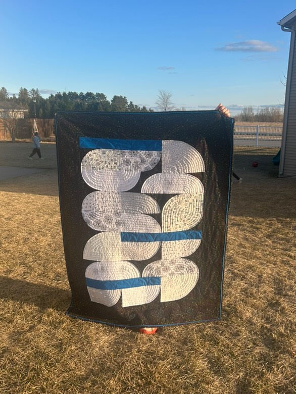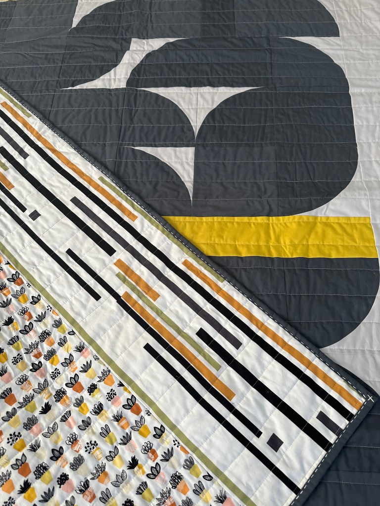 Theresa (@tkotsmith) chose some low-volume prints for Fabrics 1-8 in her 10-color version, which is such a fun variation! I also can’t help but show off her quilting (which is most visible from the back) that highlights each block.